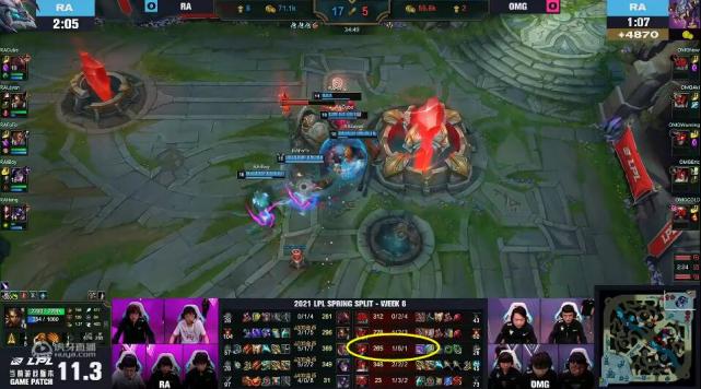 在和RA的交手中,Wuming在中路遭到了FoFo的碾压,尤其是第一局的辛德拉,可以说毫无游戏体验感,整局打完1-8-1的数据近乎超鬼。对线期直接被FoFo的卢锡安打崩,整局看下来存在感全无。要知道辛德拉是一个手长的控制法师,就算在后面偷偷放技能,也不至于会打出这样的表现。