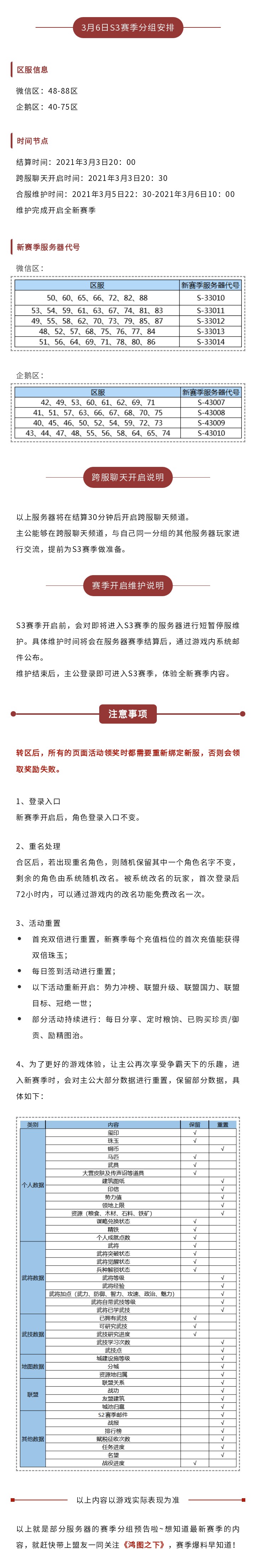 感谢各位主公对《鸿图之下》的喜爱与支持,本次预告涉及目前正处于S2赛季的区服:微信48-88区、企鹅40-75区。