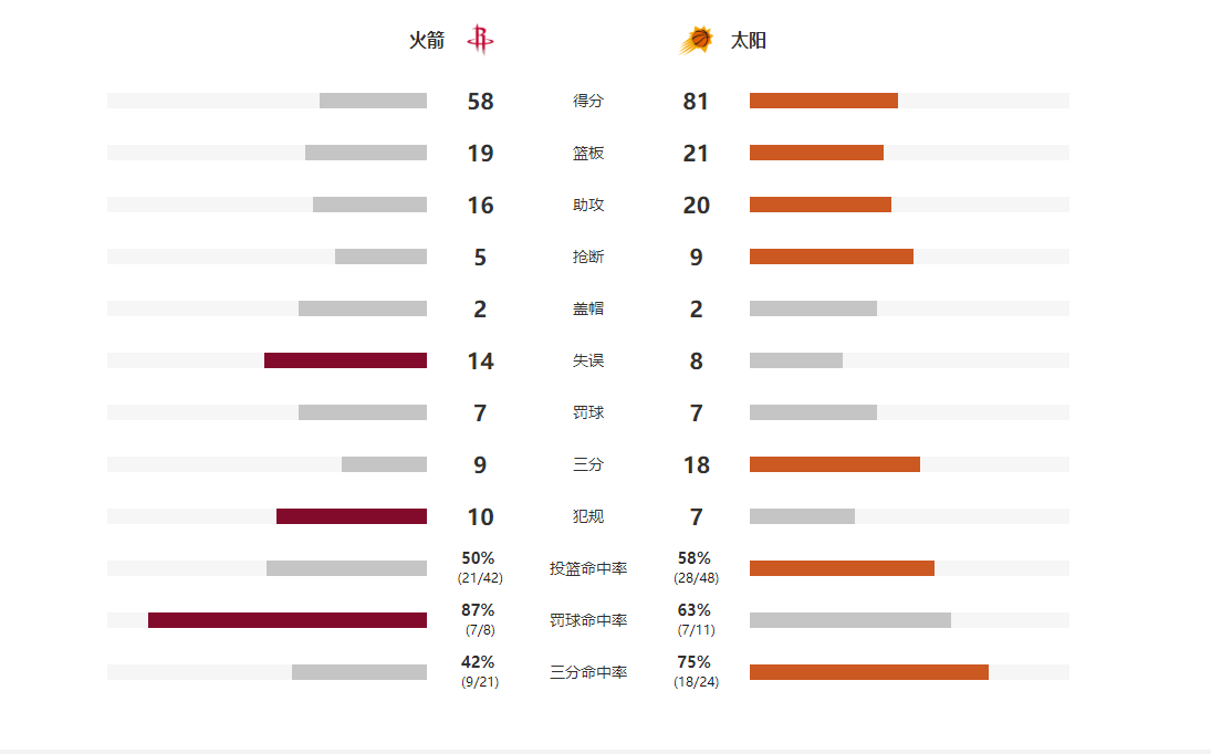上半场比赛!火箭打的还真不差!就是太阳这三分命中率嗑药了?