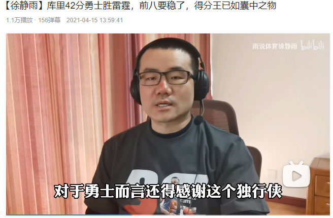 【徐静雨】库里42分勇士胜雷霆,前八要稳了,得分王已如囊中之物