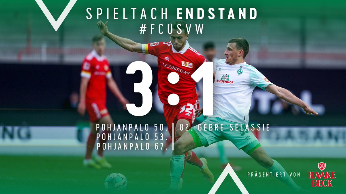 柏林联合3:1云达不莱梅,波赫杨帕洛下半场15分钟完成帽子戏法;