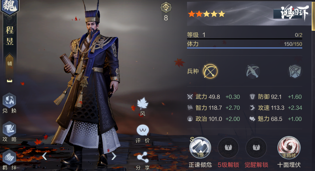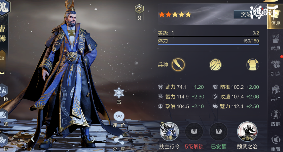 既然前排的保护问题解决了,那么接下来就要解决控制续航的问题。曹操根据政治来控制对方,所以全政治加点就行,政治越高控制成功几率越大。