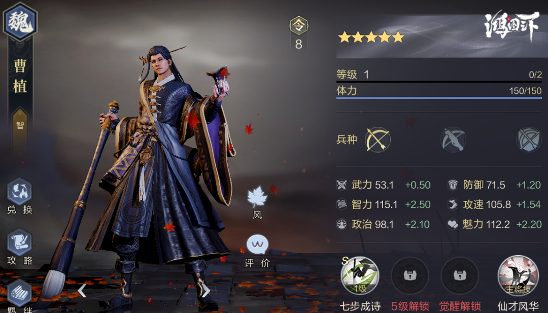 首先来看看曹植的四维属性: