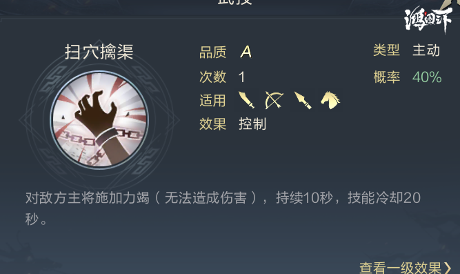 第二技能的选择很多,这里选择了一个较为冷门的技能扫穴擒渠:
