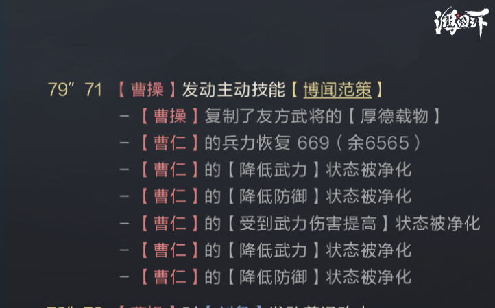 第二技能选择了博闻范策。博闻范策可以触发40%概率随机复制一个队友的技能,要是复制到苦肉计,那么曹操就会变成肉坦;要是复制到扫穴擒渠,还能控10秒主将;要是复制到曹植的厚德载物,还能再恢复一次,是不是很万金油呢?