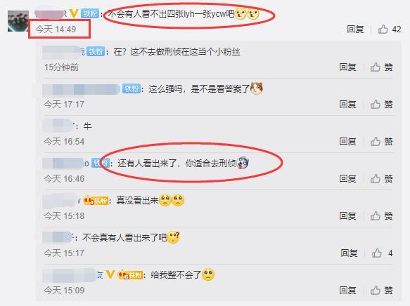 不过也有网友还是非常厉害的,直接看出来前四张就是小虎,最后一张是Cryin。结合他的评论时间要早于RNG官博公布答案的时间,看来确实有两把刷子,也难怪有网友回应道:你适合去做刑侦!