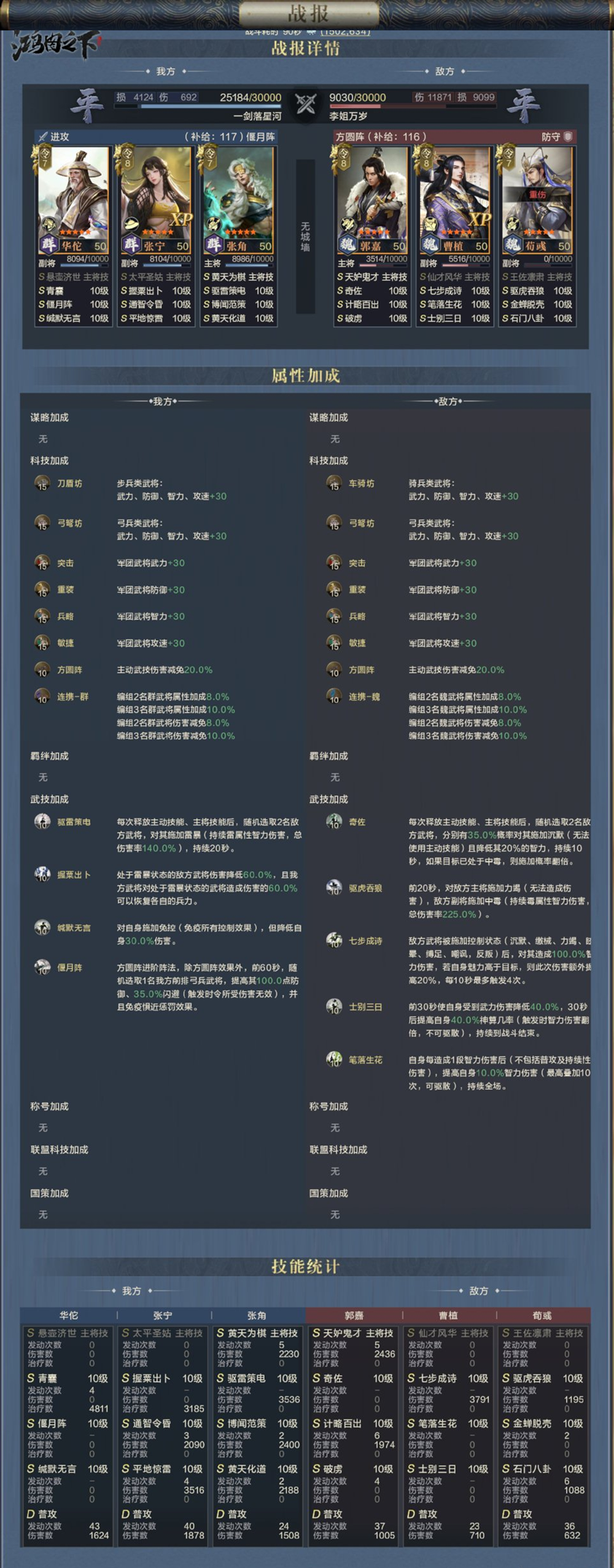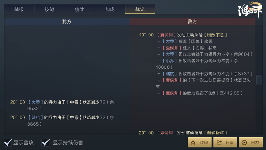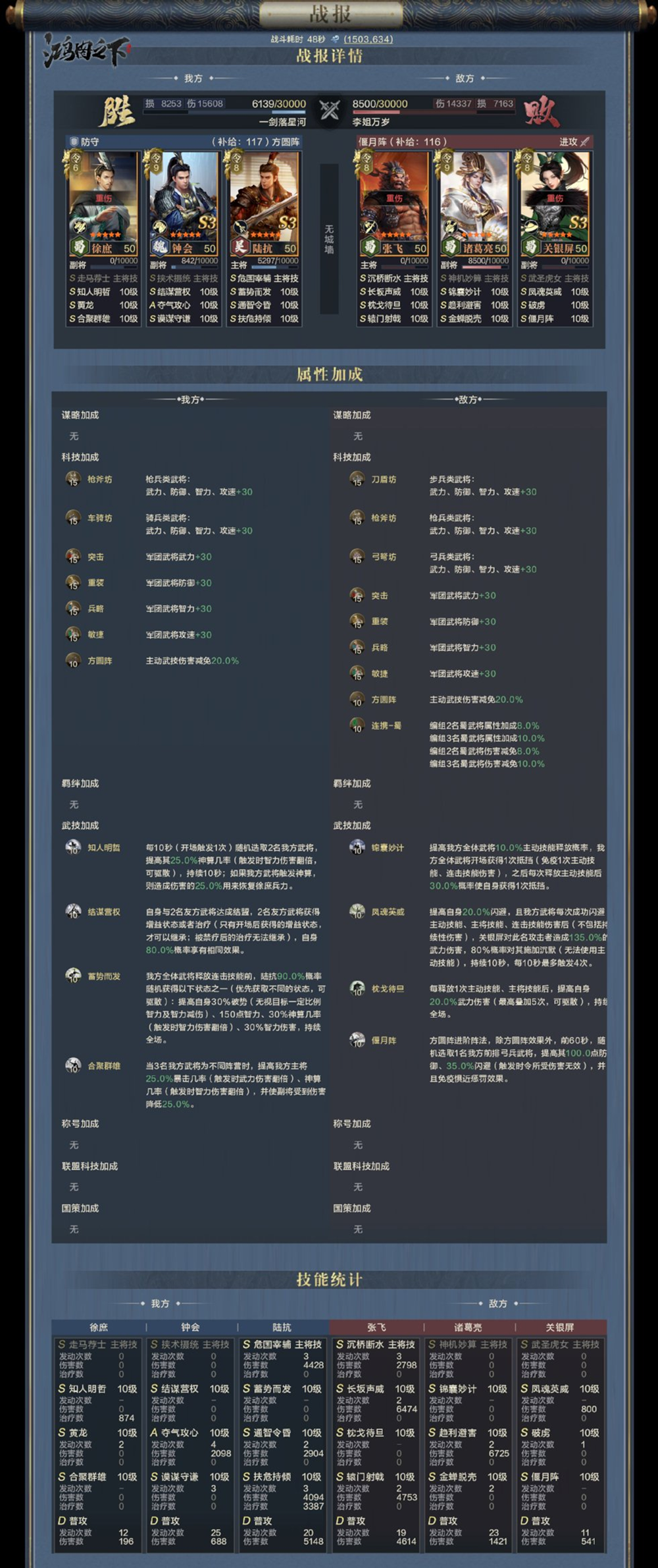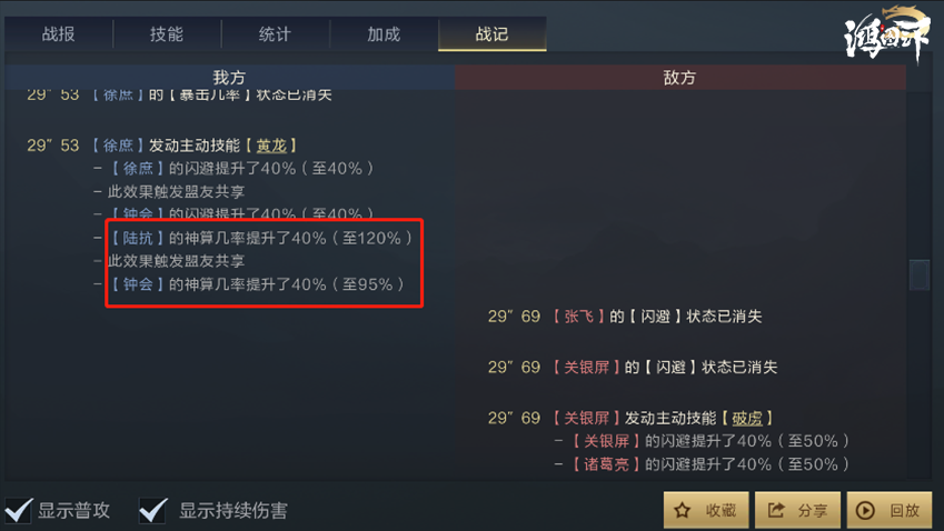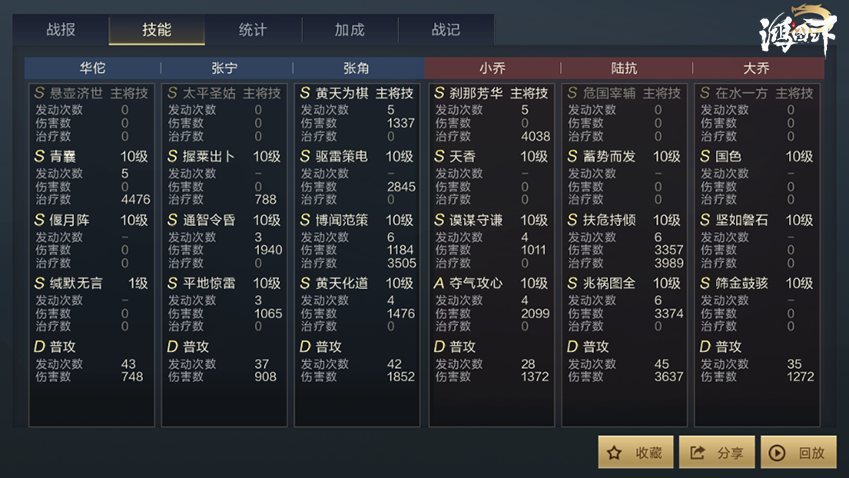 复制黄天化道是因为可以给张角补伤害,而复制平地惊雷则能打控制。从大量战斗回放和战斗记录来看,除了雷暴给到敌方输出位以外,能晕到携带解控技能的辅助位也很重要。所以选择的复制技能,有三分之二的概率复制控制技能,增加眩晕携带解控辅助武将的概率。
