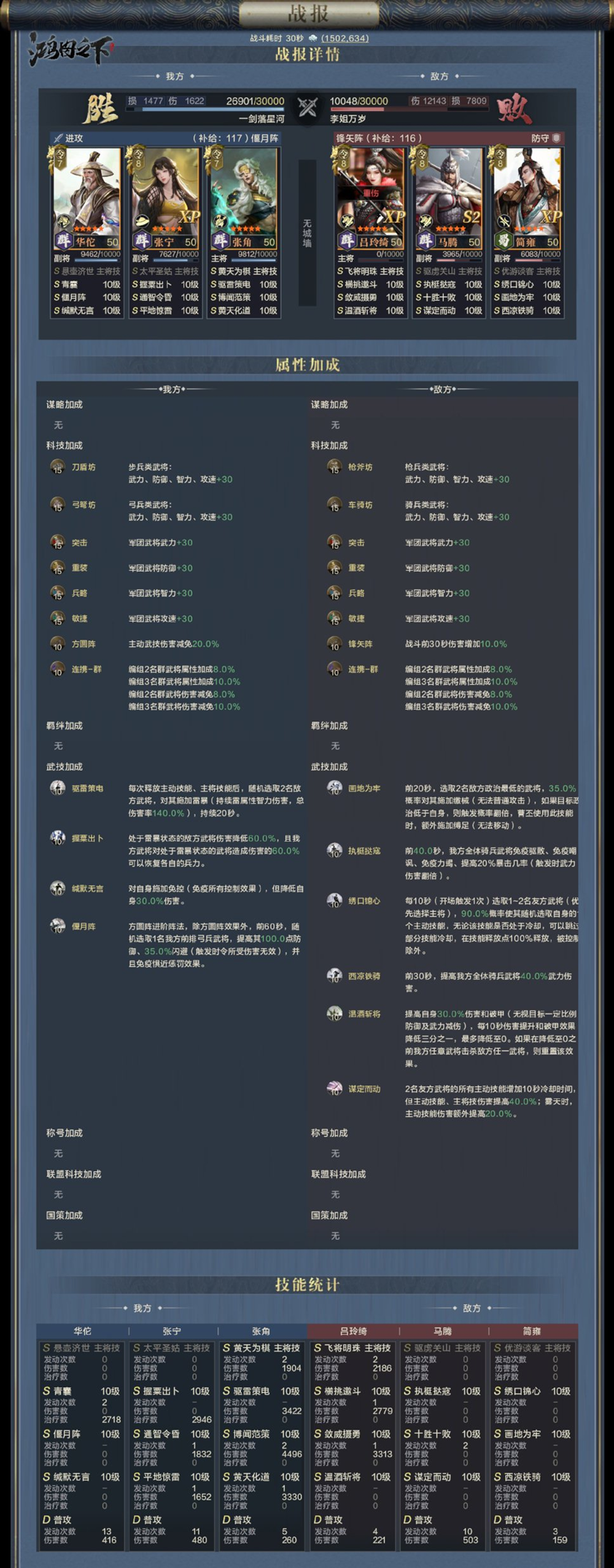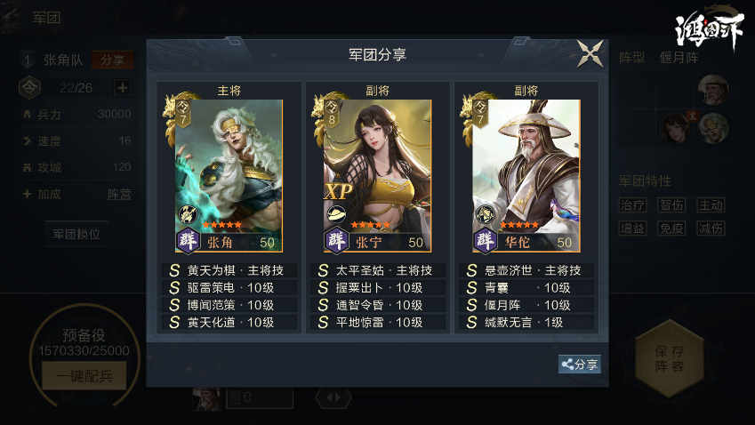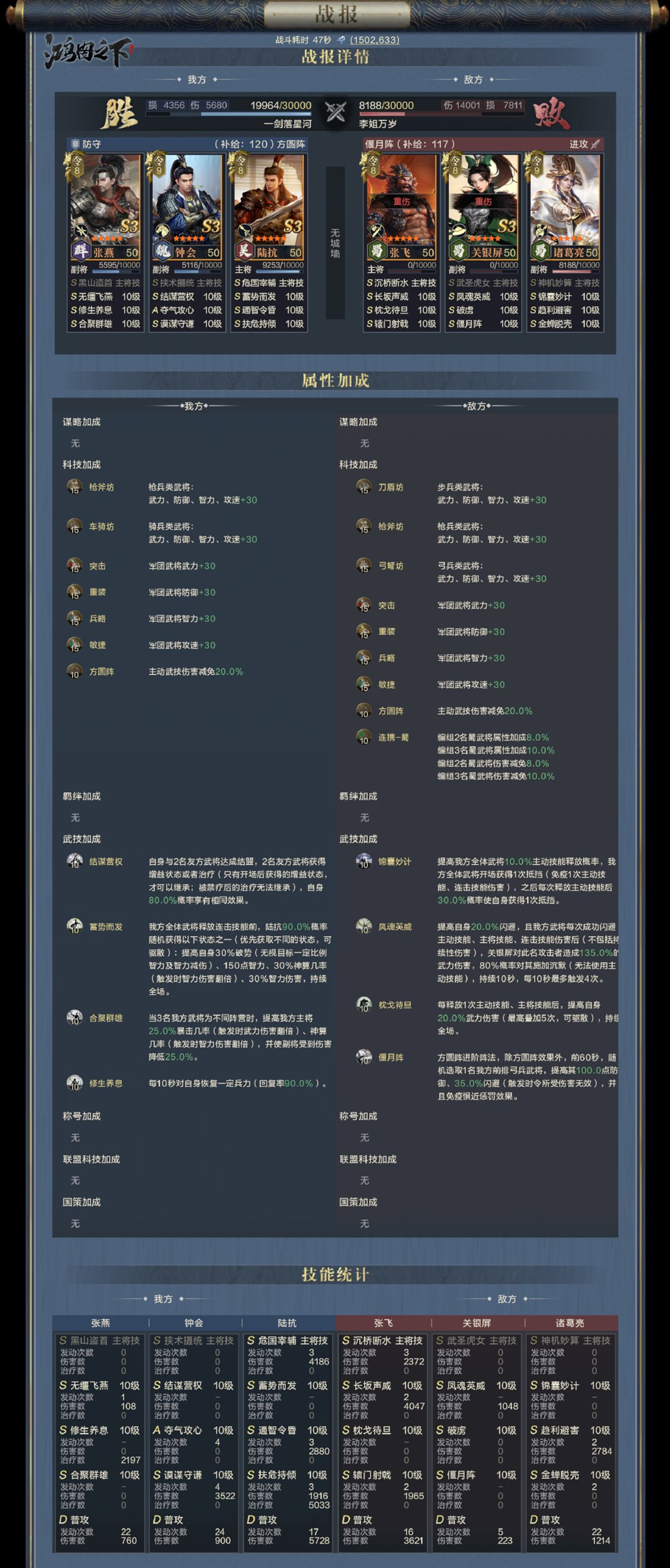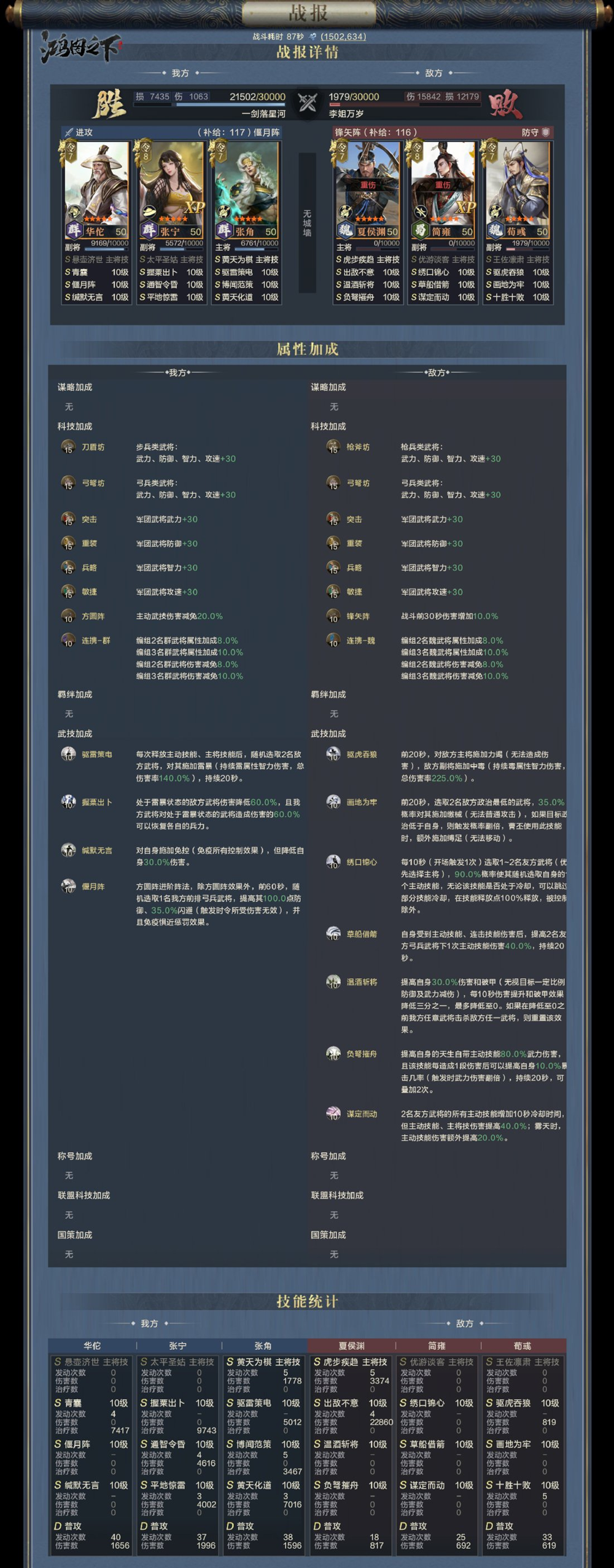 复制黄天化道是因为可以给张角补伤害,而复制平地惊雷则能打控制。从大量战斗回放和战斗记录来看,除了雷暴给到敌方输出位以外,能晕到携带解控技能的辅助位也很重要。所以选择的复制技能,有三分之二的概率复制控制技能,增加眩晕携带解控辅助武将的概率。