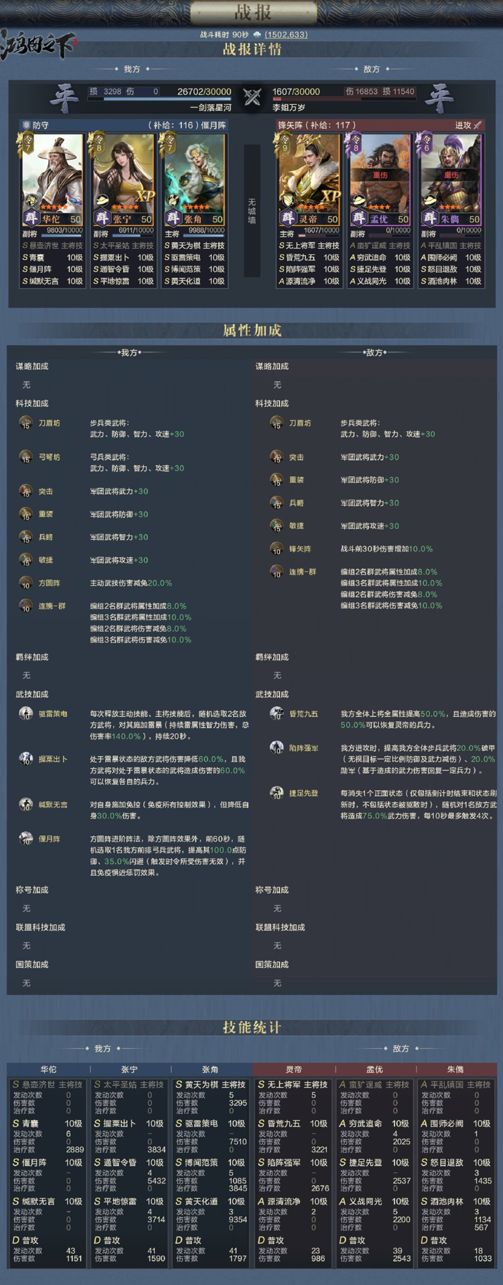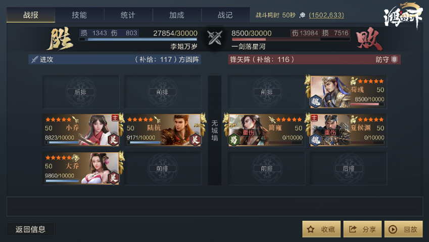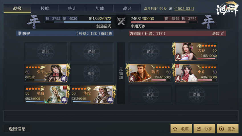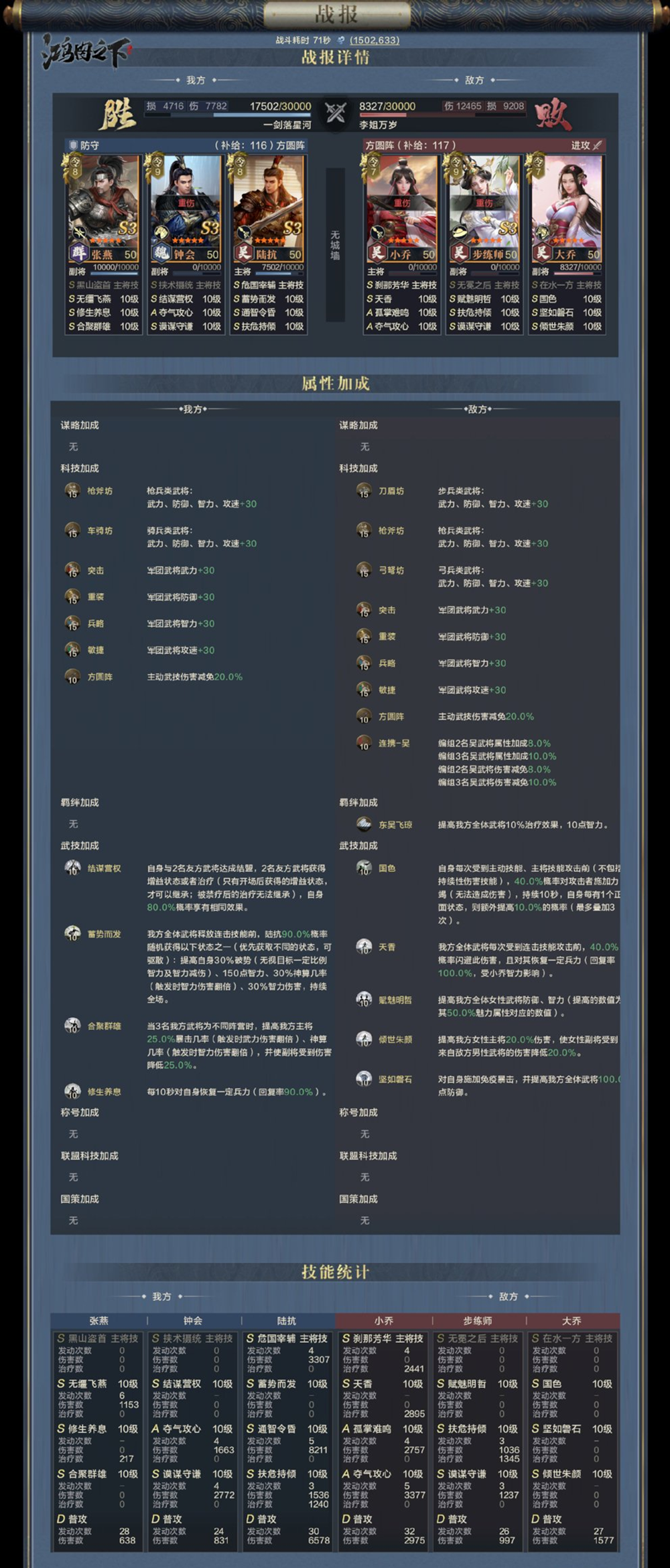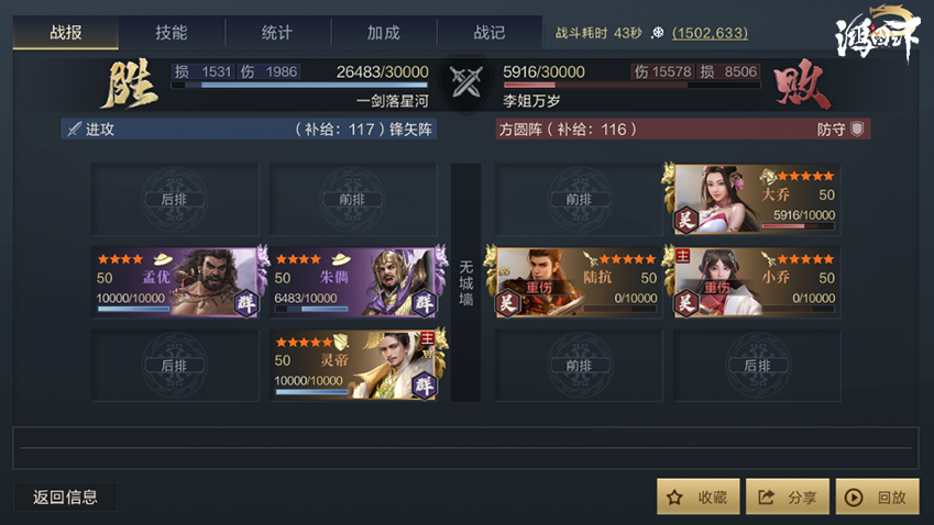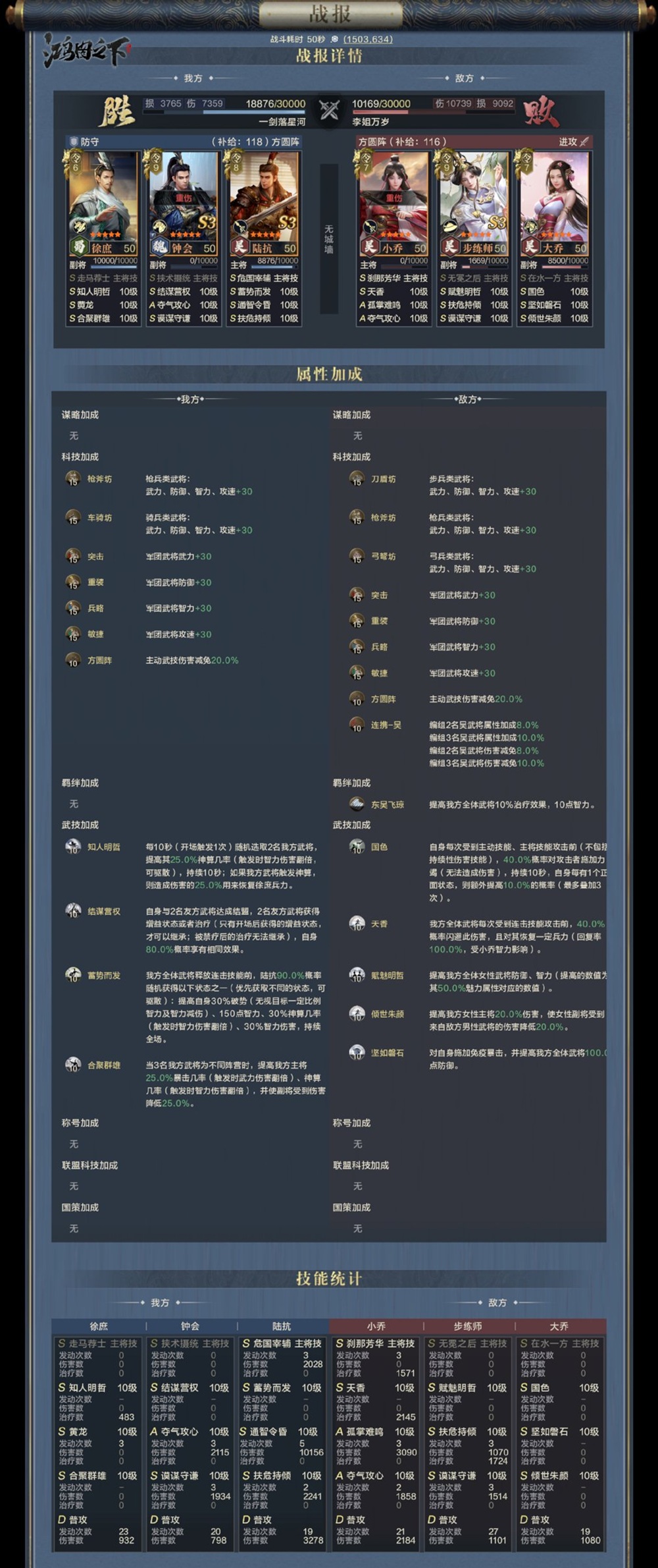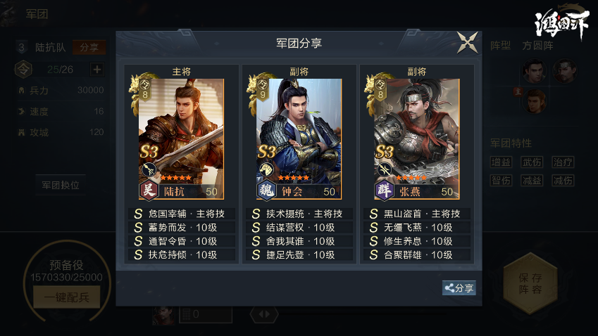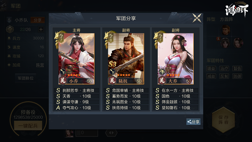 前期由于陆抗的属性叠加,对抗黄天队处于优势,后期比较容易平局。建议在做完一两队高配队伍后,不知道组什么阵容的话可以直接组这队。