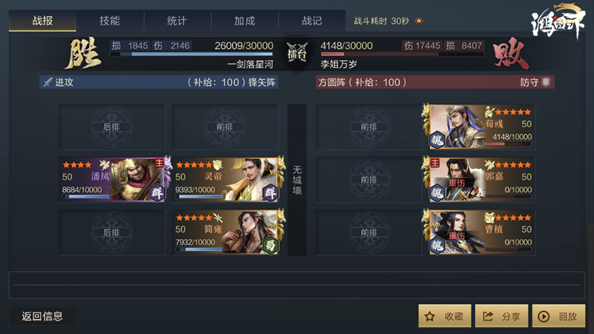 对阵夏侯荀彧(第一发十胜十败没解到夏侯,夏侯荀彧一直被雷控,夏侯血线下降后,伤害也会降低)