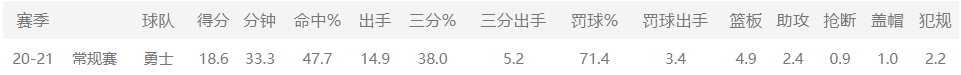 维金斯在勇士可以说没有什么战术地位,不占球权,但偶尔也有高光表现,但就算这样,场均18.6分,十分稳定。维金斯在场上更多的是无球跑动、底角三分,重点任务更多为盯防对手的箭头人物,经常登场40分钟以上,本赛季仅缺席一场,也是因为常规赛末期勇士队主力的轮休策略。