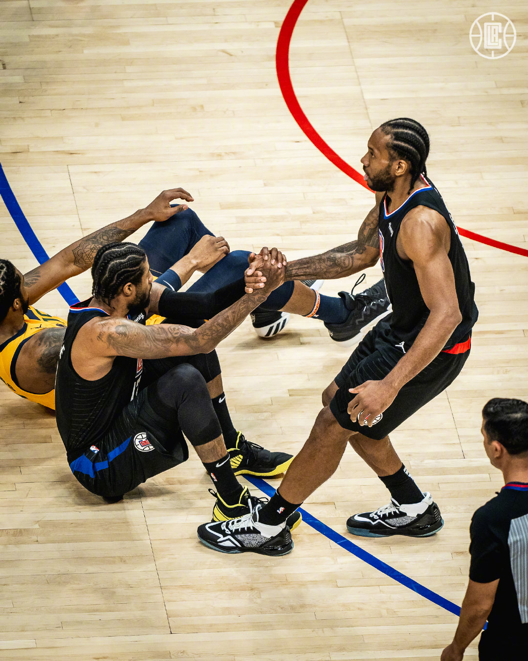 半决赛G3,在0-2落后的局面,伦纳德砍下34分和12个篮板,乔治得到31分,命中了6记三分球。两天之后的G4,乔治又得到了31分,伦纳德得到31分,罚球13投10中,包括两记势大力沉的扣篮,帮助球队扳平了系列赛。然而伦纳德却伤到了膝盖,谁也没有想到这是伦纳德这赛季的最后一场比赛。整个西决,伦纳德都坐在上层的包厢里面无表情地看完了所有的主场比赛,包括最后一场G6,因为膝盖的伤势,伦纳德不能坐飞机前往客场。赛季结束,不可避免的一个话题就是伦纳德还会继续留在快船吗?