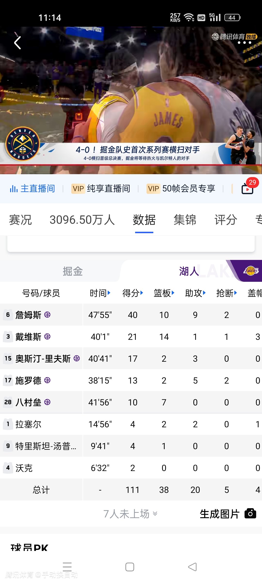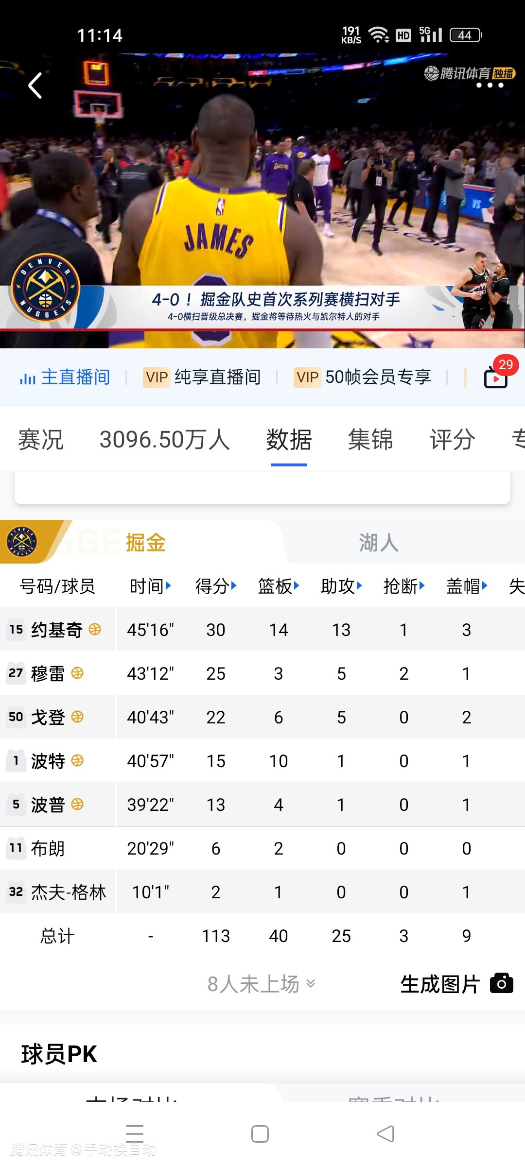 兄弟们,这个赛季结束了了,我们下半年10月20号见。#4-0!掘金横扫湖人首进总决赛##没有奇迹!詹姆斯40分难救湖人##湖人遭15分逆转,谁该背锅?#