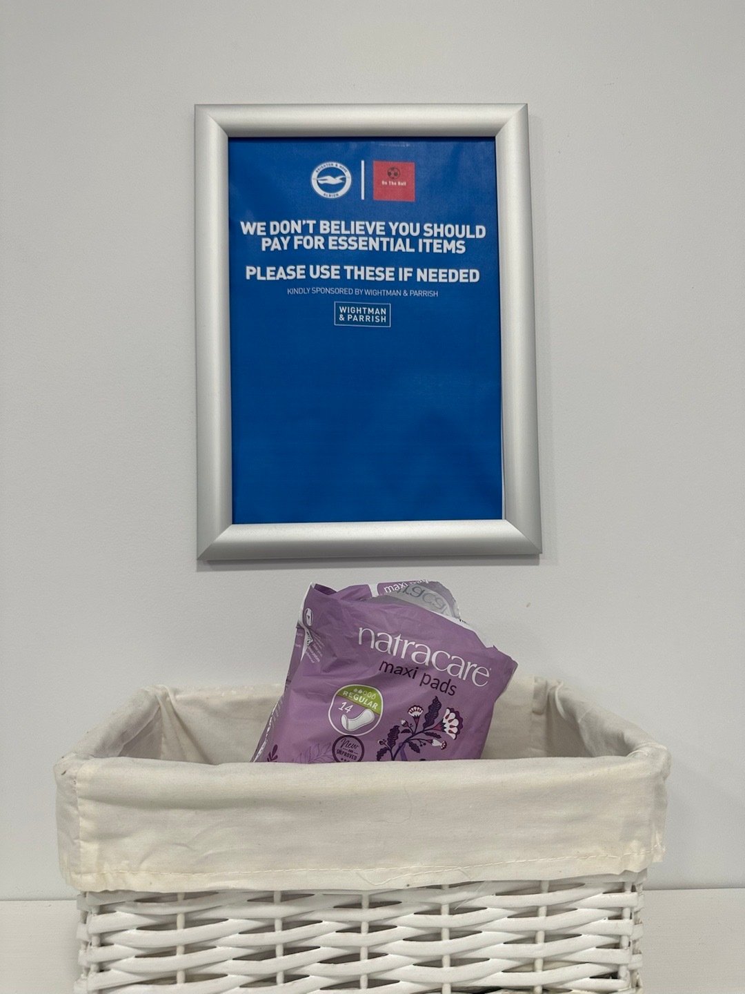 布莱顿球场的女卫生间里有免费的卫生巾和棉