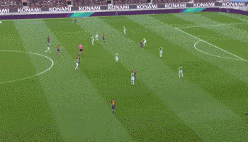 巴萨的第二个进球,依旧是法蒂走肋部空间的一个代表作。莱万的特点就是拉回来快速做球,法蒂的穿插,与莱万的这个特点也正常对上。