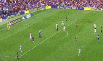 阿尔巴的传球没有给法蒂,而是找到莱万,可惜后者的头球顶偏了。