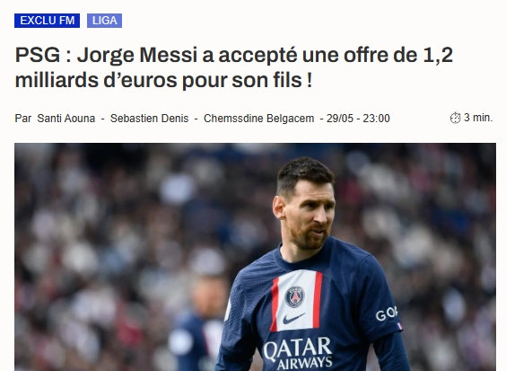 法媒《footmercato》报道,梅西父亲接受了来自沙特球队利雅得新月的巨额报价——2年12亿欧合同,但是球员还没确认。 法媒还提到,新月为梅西开出的6亿欧年薪,是C罗目前收入的两倍。根据最新汇率,6亿欧元约合45.4856亿元人民币。