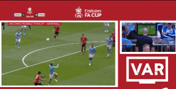 第31分钟,裁判通过VAR回放判定格拉利什禁区内手球,曼联获得点球