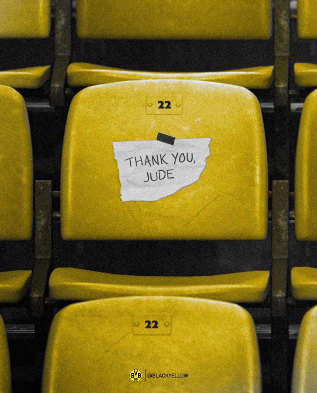 贝林厄姆的告别信: “感谢这三年来与多特蒙德相关的所有人的帮助,以及球迷们的支持。无论高光或低谷,能穿上黄黑战袍一直是一种荣幸。很高兴我迈出了职业生涯的下一步,但同时我也不会忘记我在这里的经历。一日黄黑,终生黄黑,祝各位未来好运,Heja BVB!”