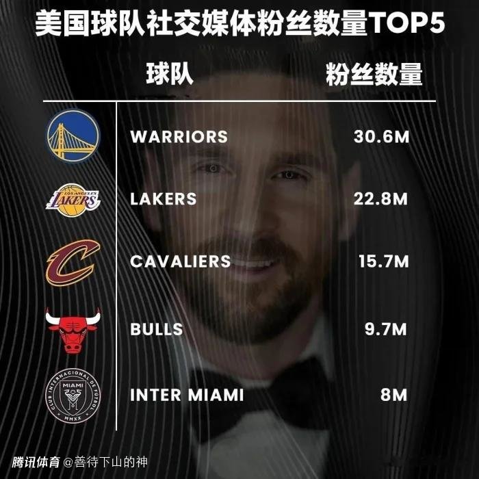迈阿密国际的粉丝数量在美国体育俱乐部中也已经排到了第五的位置,仅次于四支篮球队。