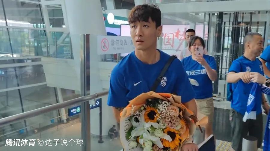 卫冕冠军武汉三镇队在结束了客场同上海海港的比赛后,已经回到了武汉,在球队抵达武汉后,前来接机的球迷为韦世豪送上了一束鲜花,以肯定他在比赛中的“英勇”行为。