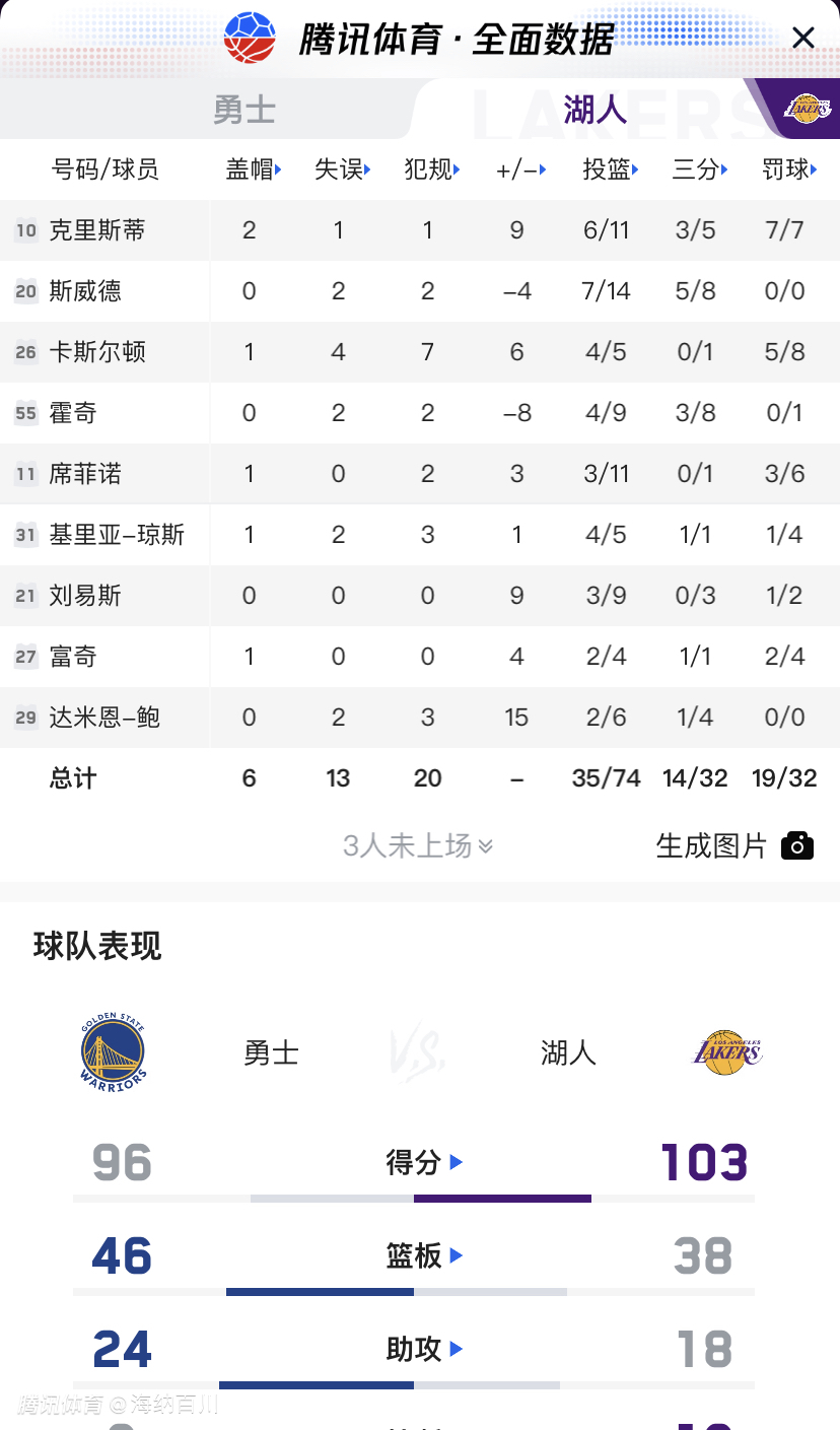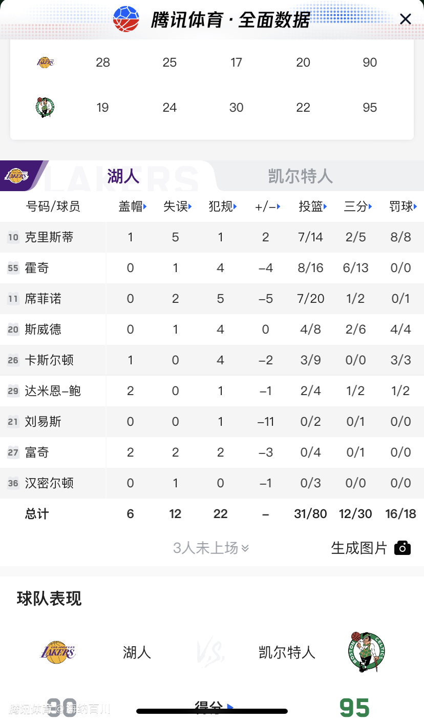 夏季联赛打了7场。湖人小将们的表现如何呢?其实还算令人满意的了。克里斯蒂场场表现亮眼,斯威德三分也较稳定了,卡斯尔顿捡到宝了,霍奇色让大家意外的。虽然上一场打灰熊全队梦游,不过这就可以了。毕竟夏季联赛练兵大舞台。文班亚马状元身份第一场打的也不好,何况这些边缘人了。有起伏很正常,加油吧小伙子们#湖人夏季联赛#也许您还喜欢:世界杯直播 亚洲杯直播 欧洲杯直播 足球直播