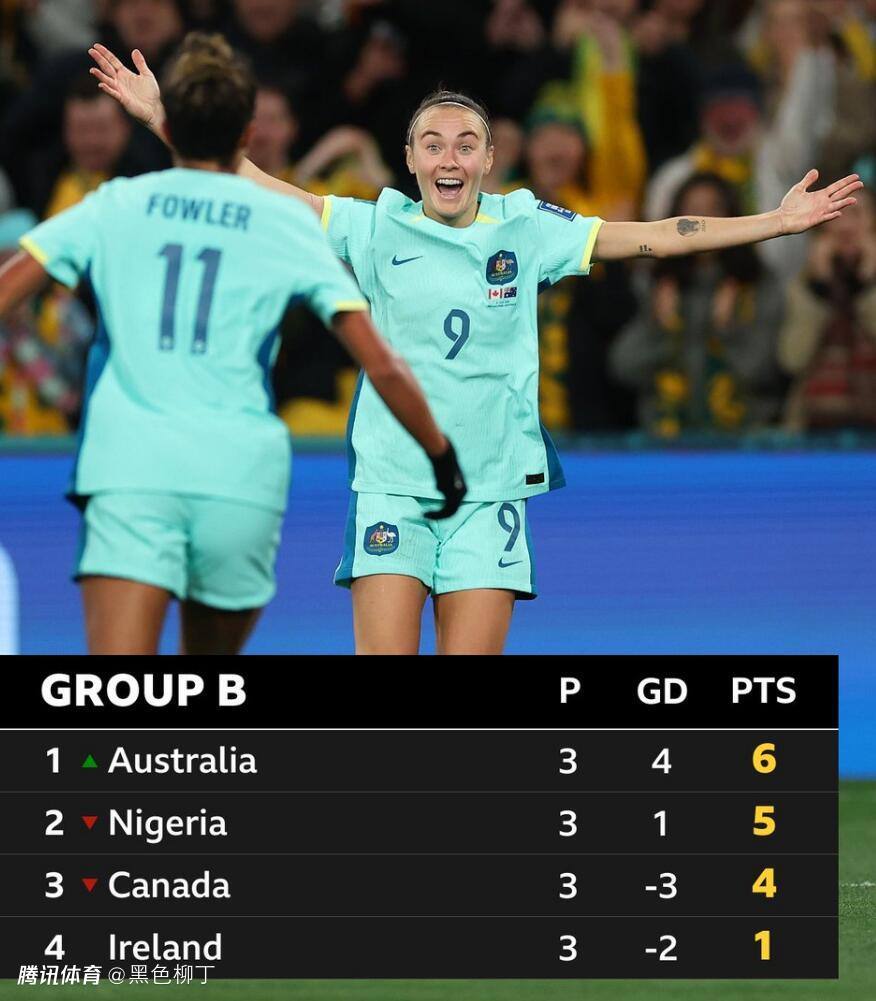 女足世界杯小组赛B组第3轮,另外一场比赛,尼日利亚0比0战平爱尔兰。这样一来,澳大利亚和尼日利亚从B组出线。