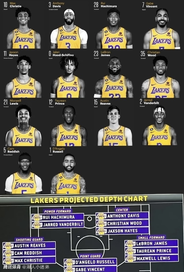 再聊聊替补,主要轮换:文森特,中产特例拿下的不必多说,期望值已经拉高;普林斯,个人觉得是休赛期最重要的引援,湖人太需要3D了,普林斯有高度,2-3号位摇摆,还能打小阵容的4,还有防守和三分,一定会被重用;八村,就不多说了,非常关键的轮换;伍德,底薪加盟湖人,就靠今年重新打出身价了,打替补防守差的问题会被掩盖,有三分的中锋非常难得。