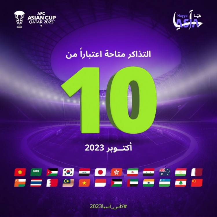 2023亚洲杯将于2024年1月12日至2月10日在卡塔尔举行。在2023年10月10日当地组委会宣布销售球票的24小时内,81,209张球票售出。