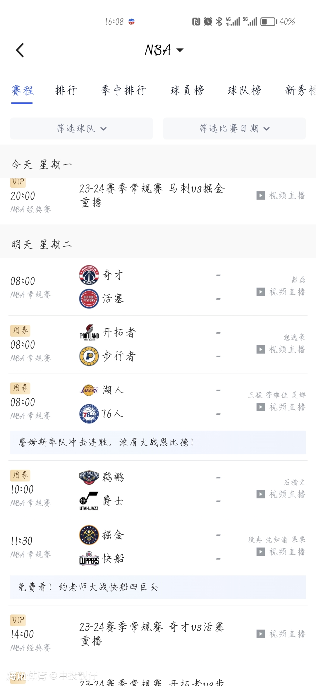 11月28日比赛预测 奇才VS活塞 活塞胜 开拓者VS步行者 步行者胜 湖人VS76人 76人胜 鹈鹕VS爵士 鹈鹕胜 掘金VS快船 快船胜#詹姆斯多项里程碑!湖人胜骑士##成功复仇!快船大胜独行侠##NBA季中锦标赛冠军预测#也许您还喜欢:世界杯直播 亚洲杯直播 欧洲杯直播 足球直播