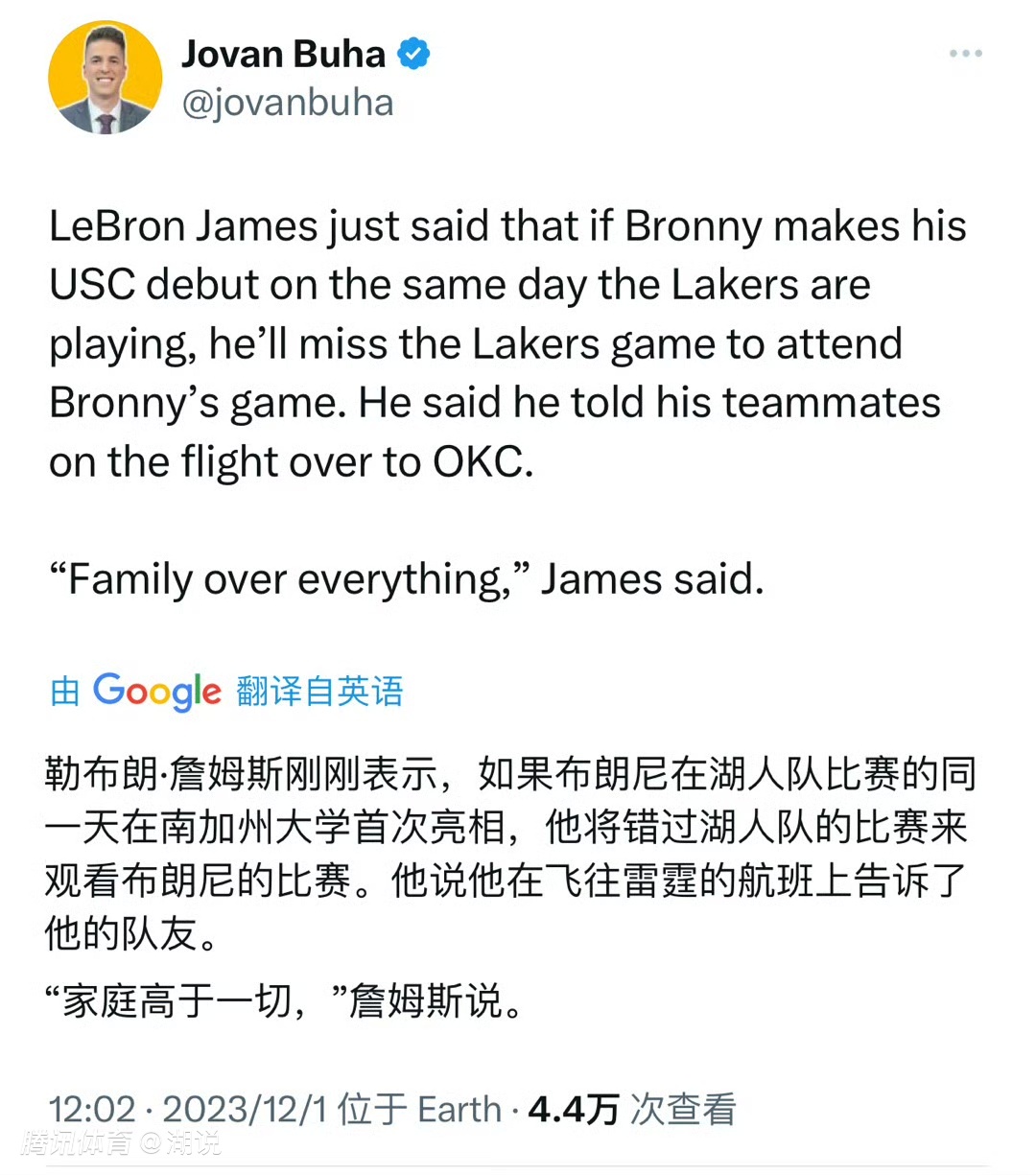 詹姆斯赛后表示,如果布朗尼的南加大首秀和湖人比赛安排在同一天,自己会向球队请假去观看儿子的首秀,家庭高于一切。 #亚历山大33分!雷霆逆转湖人##洛杉矶湖人队##湖人大胜活塞,送对手15连败#也许您还喜欢:世界杯直播 亚洲杯直播 欧洲杯直播 足球直播
