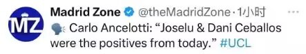 安切洛蒂:何塞卢和塞巴略斯表现的很积极 贝林厄姆依旧出色