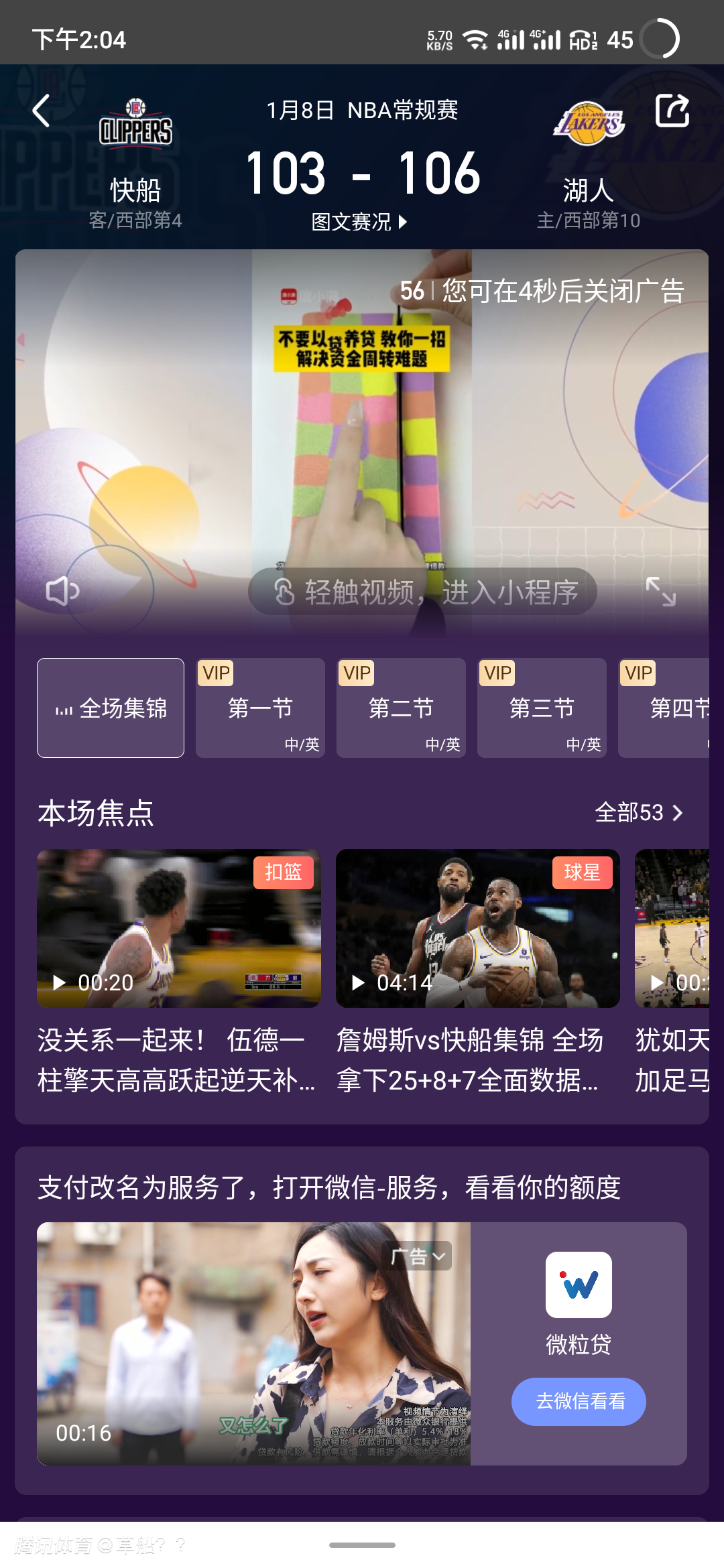 #击沉快船!湖人终结4连败#