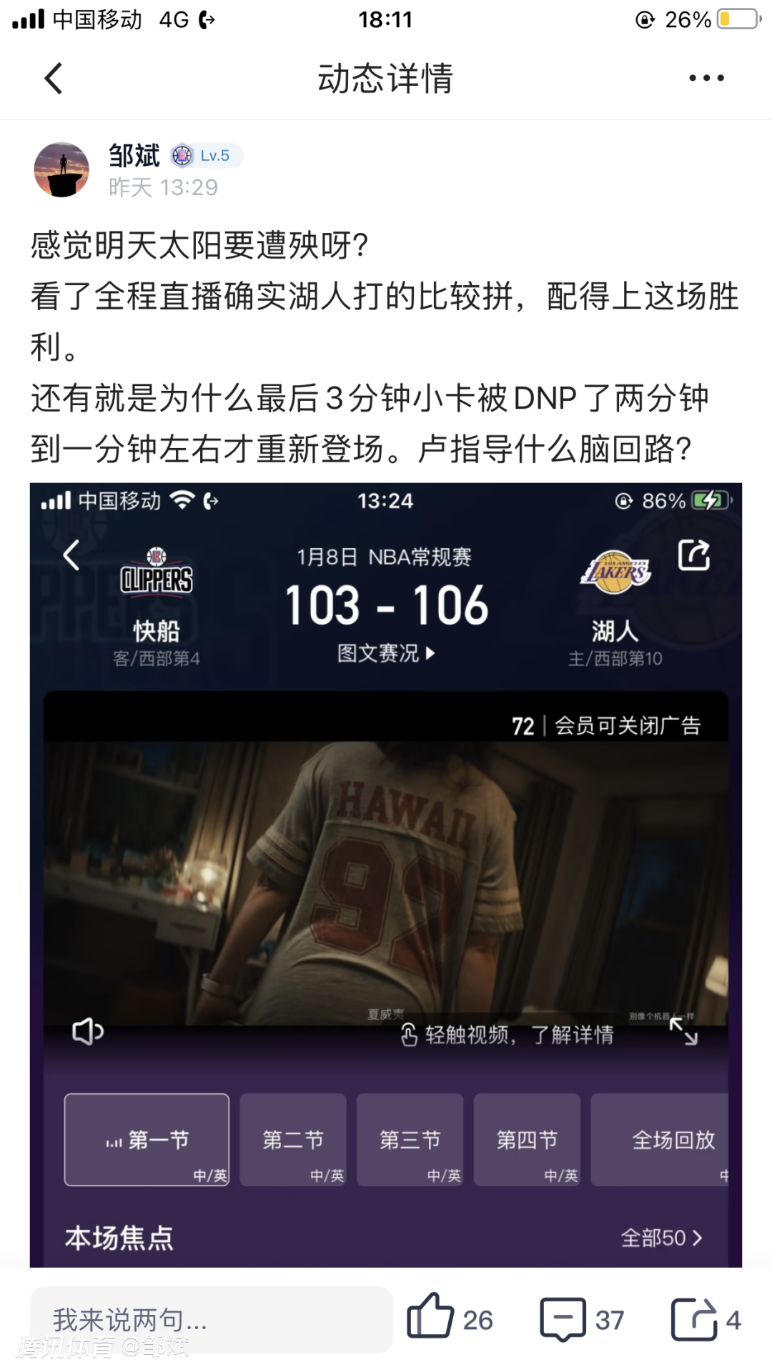 昨天我就说了吧?快船最近这状态,那不是湖人能干赢的,卢指导是懂人情世故的。居然必须要送一场不能赢的比赛,那就只能把火气撒太阳身上了。#三巨合砍61分快船轻取太阳#也许您还喜欢:世界杯直播 亚洲杯直播 欧洲杯直播 足球直播