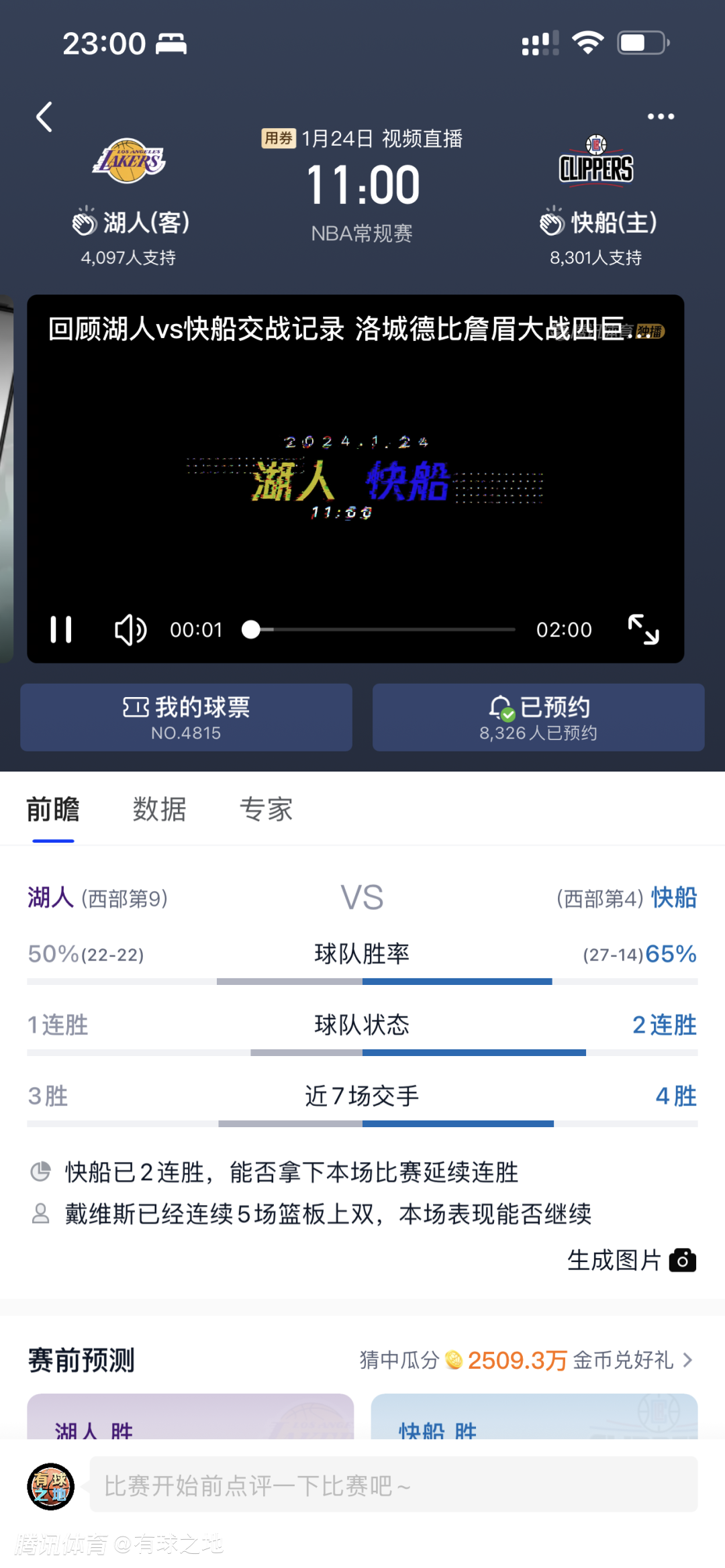 明天快船对阵湖人大概率会大比分赢下比赛也许您还喜欢:世界杯直播 亚洲杯直播 欧洲杯直播 足球直播