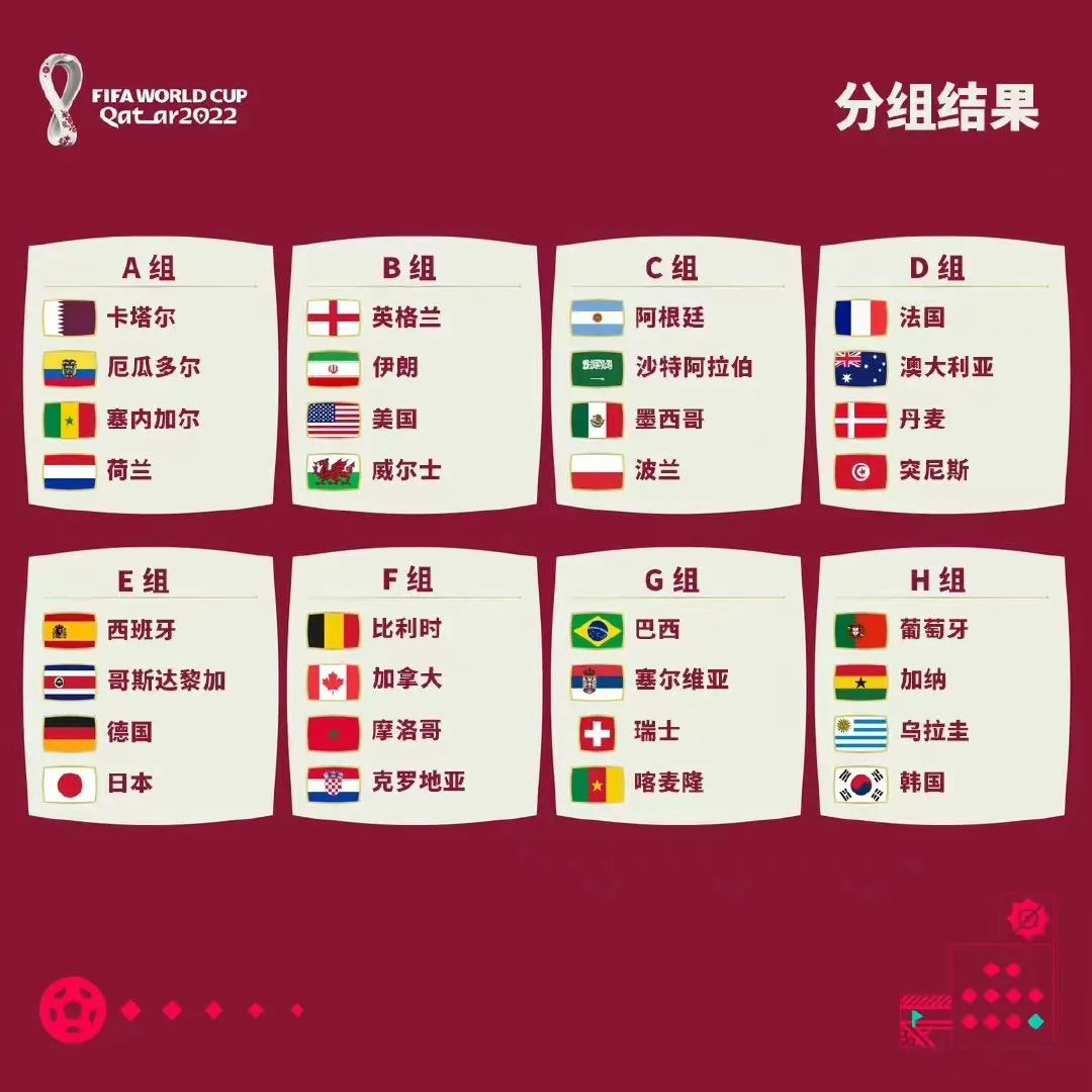 卡塔尔世界杯分组情况: