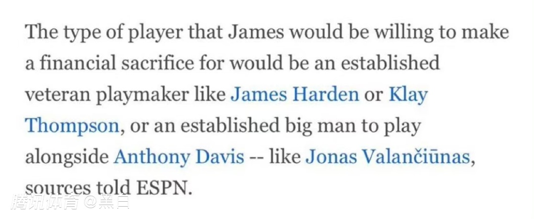 Dave:消息人士向 ESPN 透露,詹姆斯愿意为其做出经济牺牲的球员类型是像詹姆斯-哈登或克莱-汤普森这样经验丰富的老将,或者是像约纳斯-瓦兰丘纳斯这样能与安东尼-戴维斯--并肩作战的成熟大个子。 #詹姆斯将跳出合同与湖人续约##哈登快船##克莱汤普森#也许您还喜欢:世界杯直播 亚洲杯直播 欧洲杯直播 足球直播