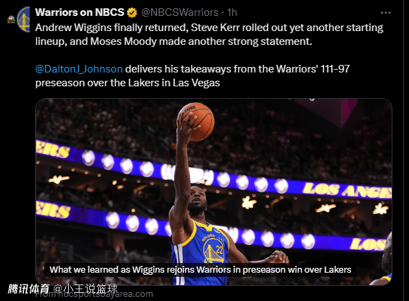 勇士此役三分命中率仅31.1%,45投14中,作为季前赛三分最准的NBA球队,本场球算是失常,但勇士依然几乎在整场比赛中占据上风。