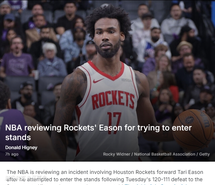 据The Athletic记者Sam Amick报道,NBA官方正在审查火箭队前锋塔里·伊森在周二111-120负于萨克拉门托国王队后试图进入看台的事件。据Amick称,伊森在穿过访客更衣室附近的隧道后,因听到一名国王球迷的嘲讽而愤怒,伊森向这名起哄的球迷扔了一条毛巾并大喊脏话。据报道,伊森随后试图进入看台,靠近球迷区,然后被保安拦住。在周二的比赛中,伊森替补出场25分钟,得到16分和12个篮板。NBA对球员与球迷的互动有严格的规定,球员在比赛结束后必须直接离开球场进入更衣室,不得在球场停留或与球迷发生任何形式的接触。如果球员违反这一规定,可能会面临罚款或其他纪律处分。最坏的情况就是罚款加禁赛,火箭接下来将面临一段艰难的赛程,如果伊森被禁赛的话,对火箭来说会非常不利。#休斯敦火箭##火箭伊森##国王vs火箭#