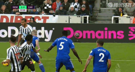 纽卡斯尔前锋隆东在一次进攻中大力射门击中了卡迪夫后卫本内特头部,随即隆东放弃了射门机会,还去问一问本内特的情况。