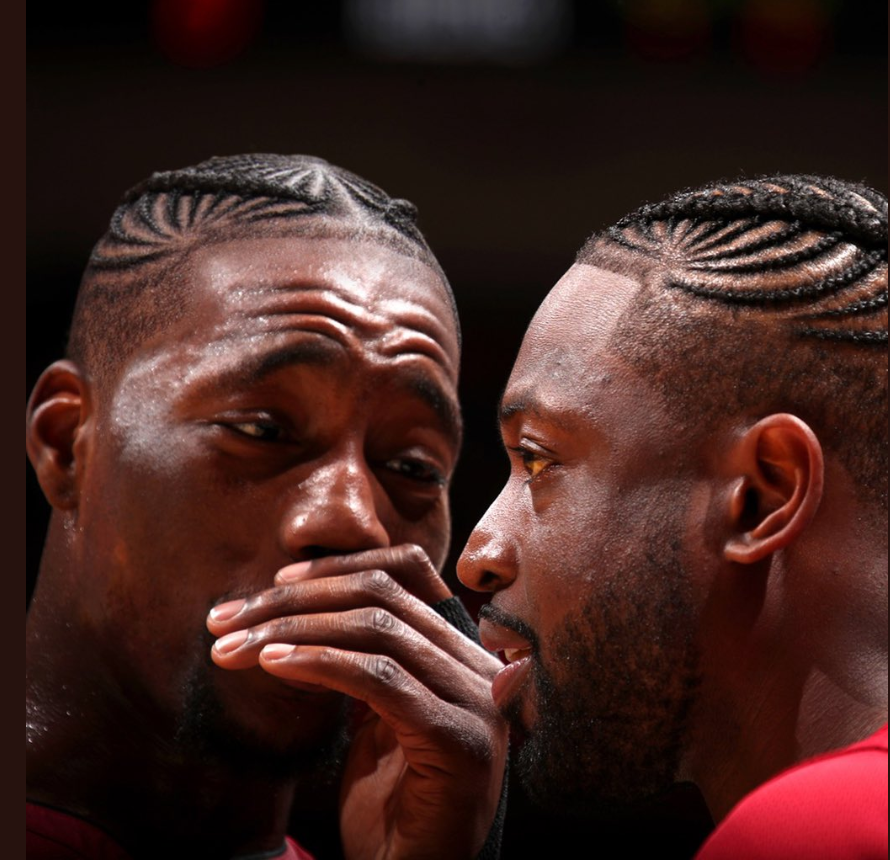 今天热火将前往TD北岸花园对战凯尔特人,大白边和阿德巴约换上了韦德同款发型。