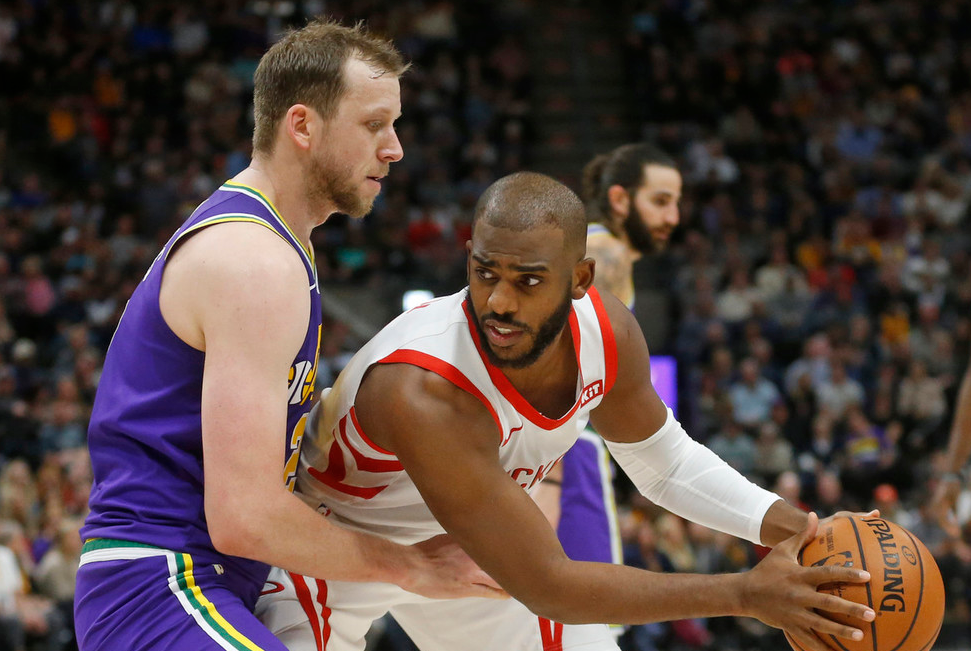 而如今,这两支球队的名字再一次被联系在了一起。火箭作为目前全联盟进攻效率排名第二的球队,对上的爵士恰恰是全联盟防守效率第二的球队,并且这两支球队还是全明星之后联盟防守前两位的球队,可谓是攻和防,矛与盾之间的激烈抗衡。要说到两支球队在场上对垒,第一时间想到的应该还会是哈登和米切尔两位出色的得分后卫之间的比较。诚然,两只球队的主心骨和第一进攻点都是二号位球员,人们会将自己关注的眼光放在他们之间的对抗中,也是无可厚非,但是仅仅只是从火箭这边考虑的话,主宰比赛走势的人,或许不是哈登。