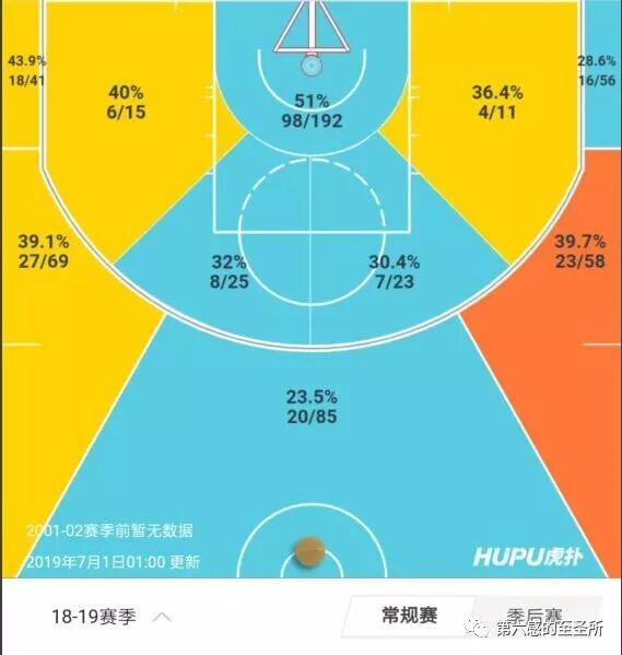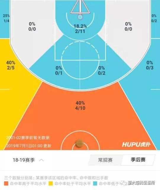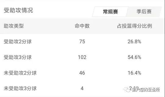 尤其是季后赛他的投篮命中率暴跌到两成,三分命中率暴跌到三成。命中率各降低了接近10个百分点,落差非常大。