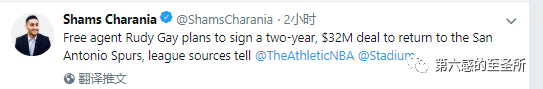马刺前锋鲁迪盖伊也将与马刺续约,合同为2年3200万美元。