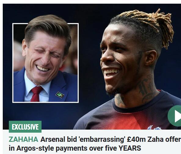 最近阿森纳开启了对水晶宫前锋扎哈的攻势,报价4000万英镑。