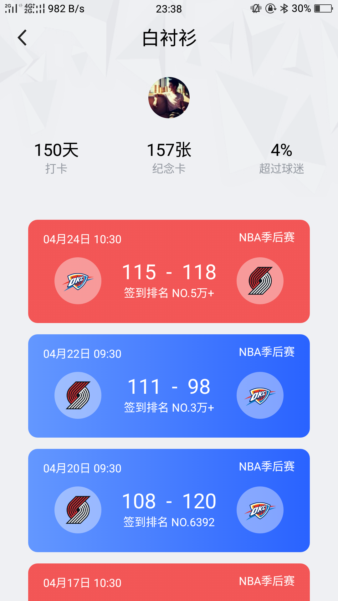 两年来,每一次打卡都是雷霆的比赛,以后应该都不会了吧也许您还喜欢:世界杯直播 亚洲杯直播 欧洲杯直播 足球直播