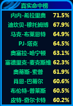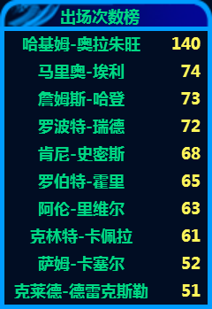 ? ? ? ?由于哈登在火箭七年都进了季后赛,而且两次西半决两次西决,所以他在火箭时期的季后赛样本容量充足,所以在看这个专题的季后赛版本时,他各项榜单的排名要比常规赛版本里普遍要高。