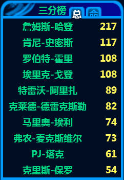 ? ? ? ?这两个榜单,按照他现在的状态,他和第二名的距离会越拉越大,尤其是三分榜。