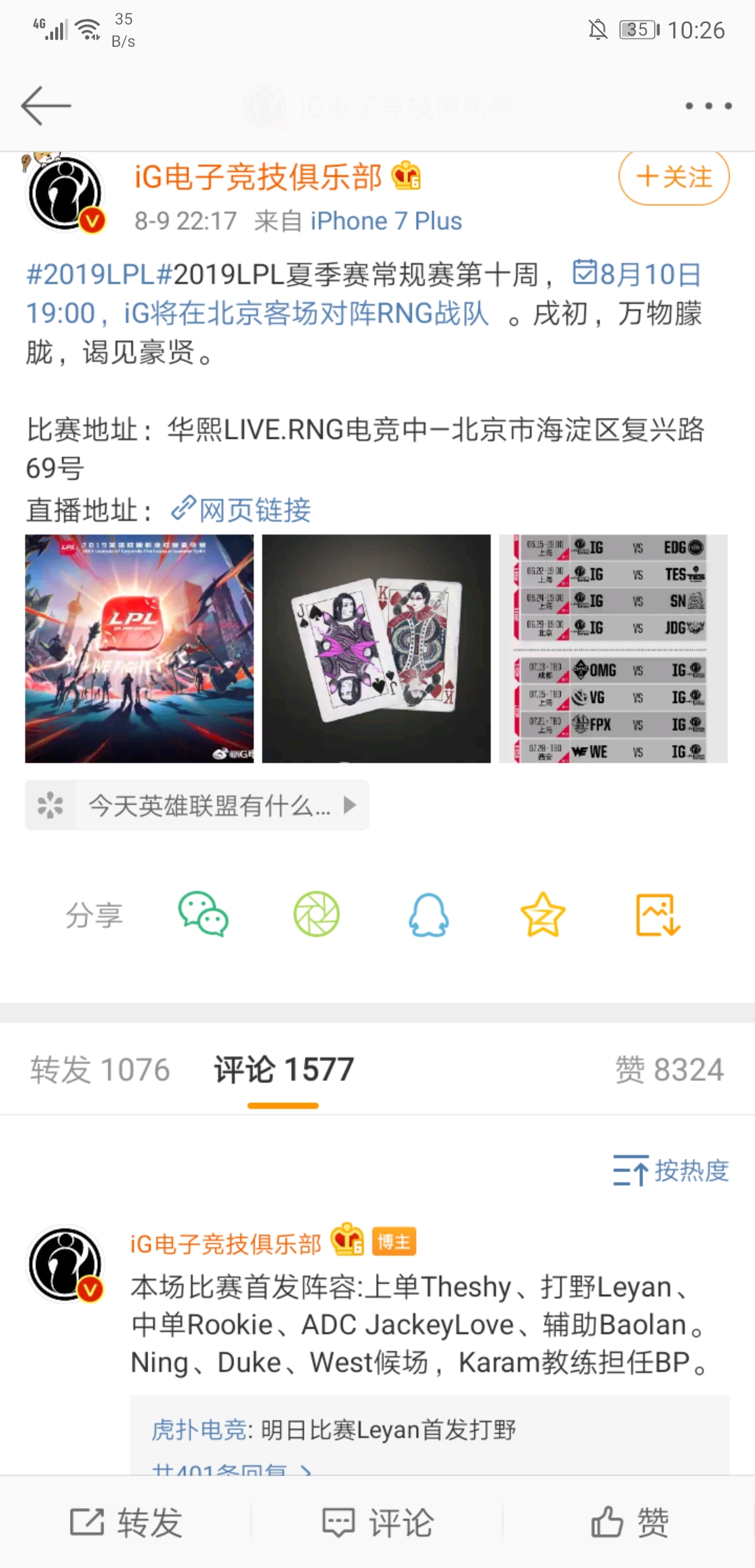 小乐言提拔到IG一队首战就是迎战RNG,你看好他的表现吗?也许您还喜欢:世界杯直播 亚洲杯直播 欧洲杯直播 足球直播