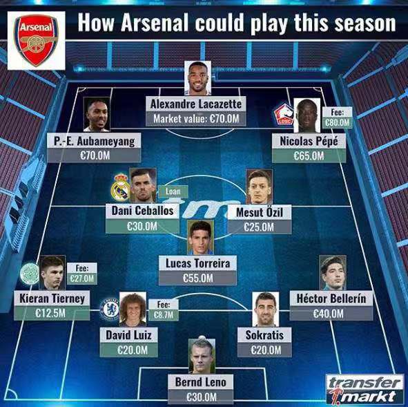 临近转会窗口关闭切尔西的大卫-路易斯来投,原本还被不少球迷诟病的枪手后防瞬间得到提升,毫不夸张的说,这个转会窗的克伦克真是拼了。新赛季,阿森纳的阵容在三线都得到改观,前锋线上,奥巴梅杨、拉卡泽特和佩佩的三叉戟,堪称英超顶配了吧。要知道,奥巴梅杨可是德甲金靴,拉卡泽特是法甲金靴,而佩佩则是在上赛季的法...也许您还喜欢:世界杯直播 亚洲杯直播 欧洲杯直播 足球直播